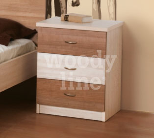 Κομοδίνο για το παιδικό – εφηβικό δωμάτιο με τρία συρτάρια σε αρμονικό συνδυασμό διαφορετικών αποχρώσεων ξύλου.